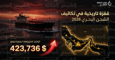 | تكلفة شحن الناقلة العملاقة (VLCC) | 423,736 دولاراً / يومياً (رقم قياسي) |
