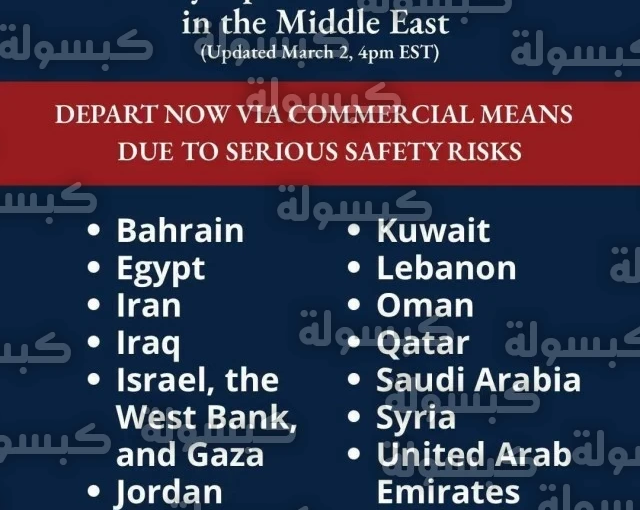 أوضحت الخارجية الأمريكية عبر حسابها الرسمي في منصة “إكس” أن هذا الإجراء الاحترازي يأتي استجابةً لتصاعد التوترات العسكرية والاضطرابات الأمنية المتسارعة التي تشهدها المنطقة حالياً، وشدد البيان على أن القدرة على تقديم المساعدة القنصلية قد تصبح محدودة للغاية في حال تفاقم الأوضاع أو إغلاق الأجواء الجوية.