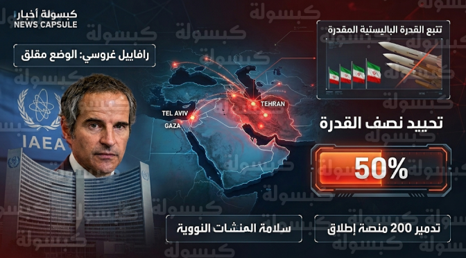 وفي سياق متصل، أكد رافايل غروسي، المدير العام للوكالة الدولية للطاقة الذرية، في تصريح صحفي اليوم، أن الفحص الفني أثبت عدم تعرض أي منشأة نووية إيرانية لأضرار نتيجة الهجمات الأخيرة، ووصف غروسي المشهد الراهن في الشرق الأوسط بأنه “مقلق للغاية”، موجهاً نداءً عاجلاً لكافة الأطراف بضرورة ممارسة أقصى درجات ضبط النفس لمنع انزلاق المنطقة نحو مواجهة شاملة.