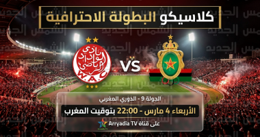 موعد مباراة الوداد والجيش الملكي اليوم الأربعاء 4-3-2026 في الدوري المغربي والقنوات الناقلة